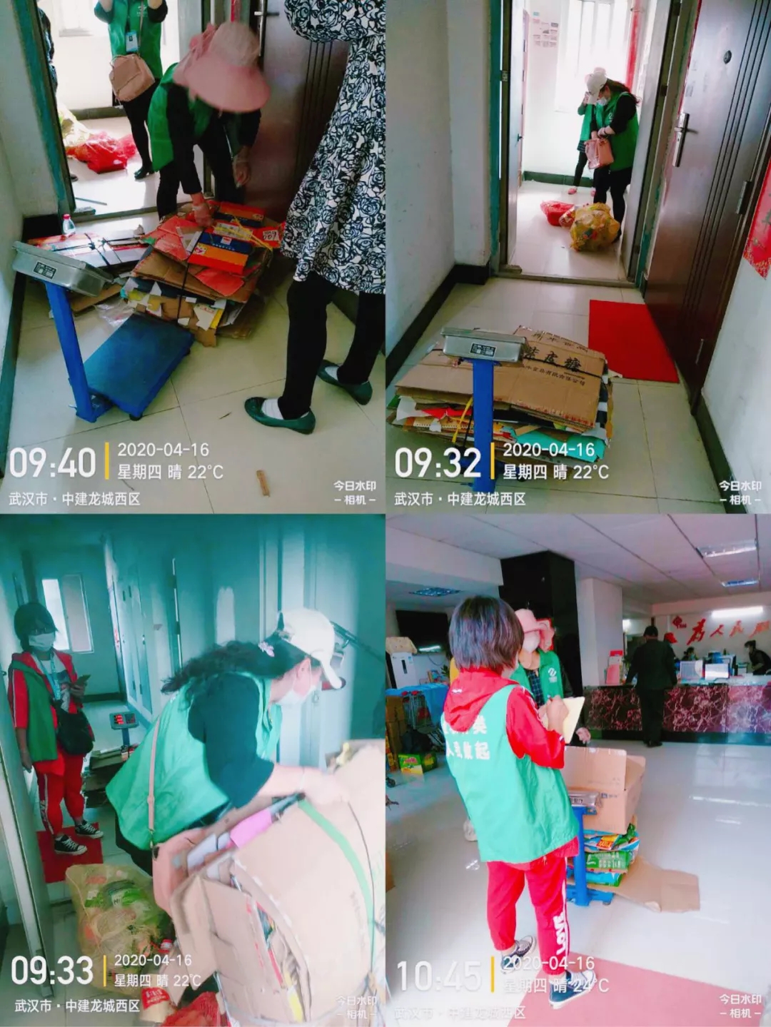 下圖為垃圾分類工作人員們正在緊張忙碌地對居民們的廢紙板、塑料瓶等進(jìn)行一一稱重。