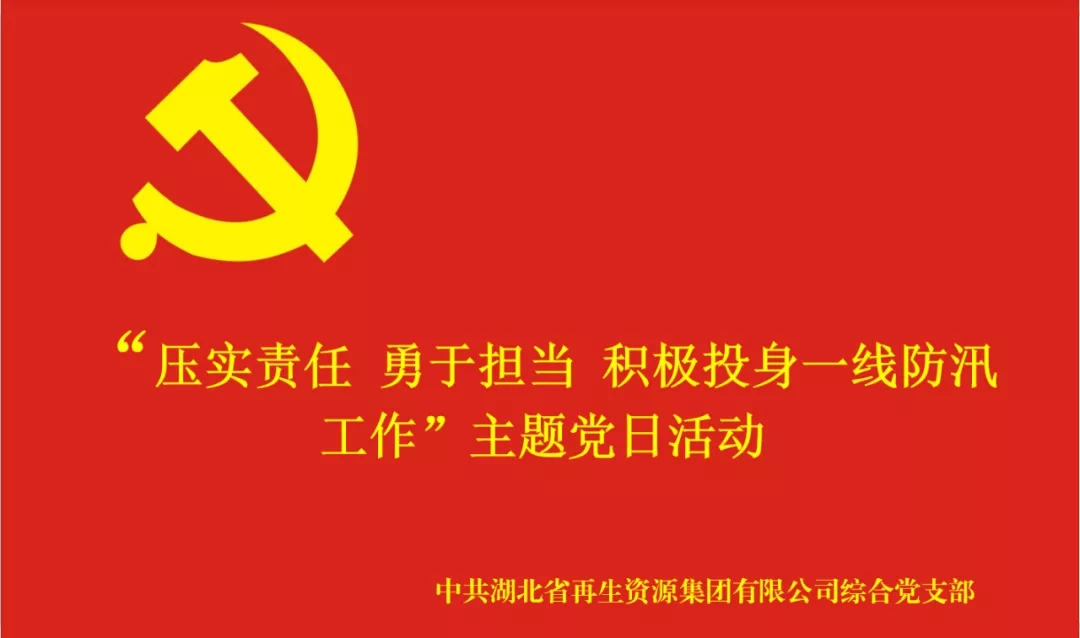 按照中共中央組織部印發(fā)的《關于在防汛救災中充分發(fā)揮基層黨組織戰(zhàn)斗堡壘作用和廣大黨員先鋒模范作用的通知》文件精神,2020年7月24日下午,湖北省再生資源集團綜合黨支部開展“壓實責任 勇于擔當 積極投身一線防汛工作”主題黨日活動。