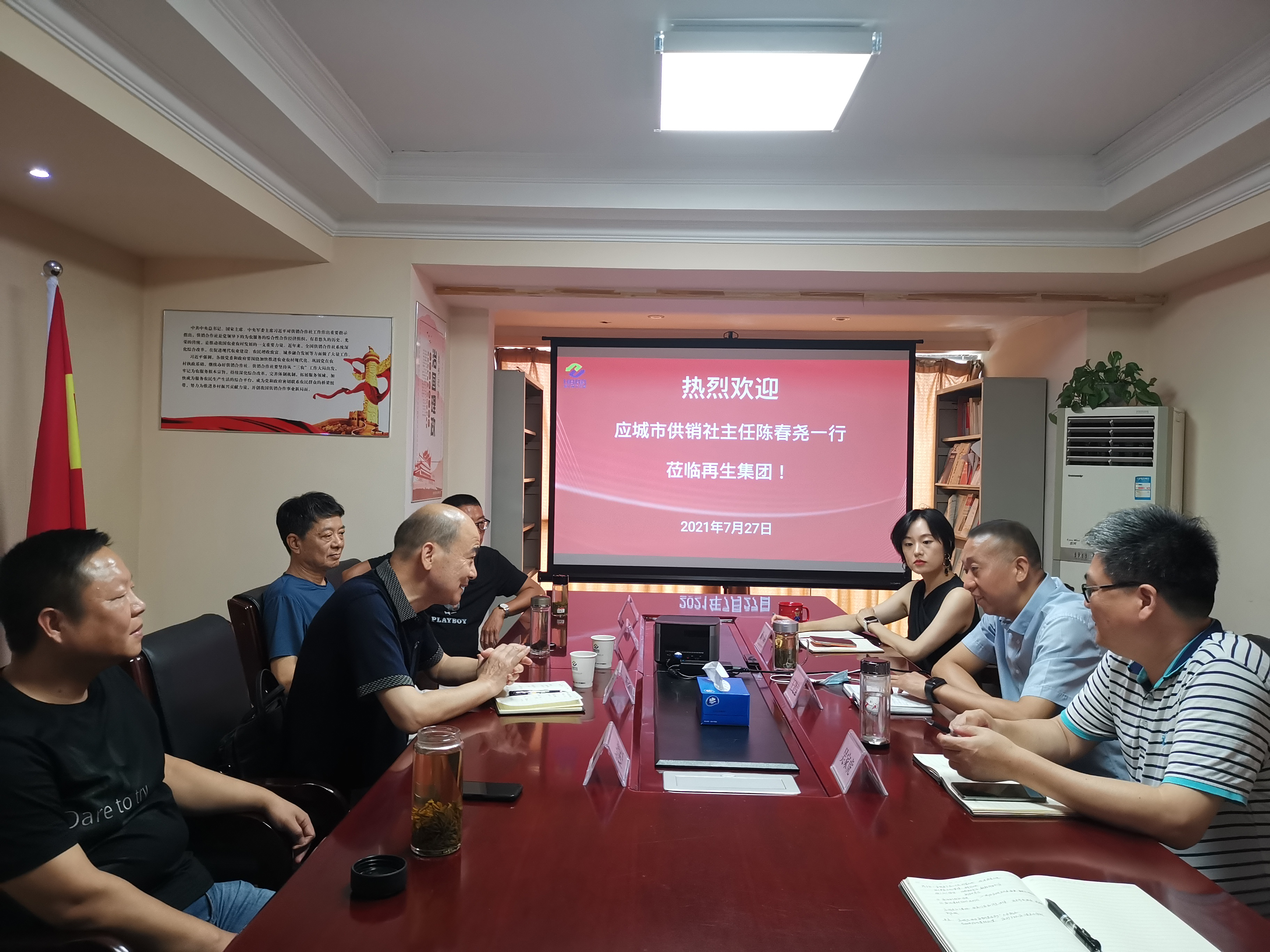 7月27日下午,應(yīng)城市供銷社陳春堯主任一行四人到訪再生集團(tuán)。集團(tuán)公司黨總支書記、董事長王建強(qiáng)熱情接待并進(jìn)行了座談交流。