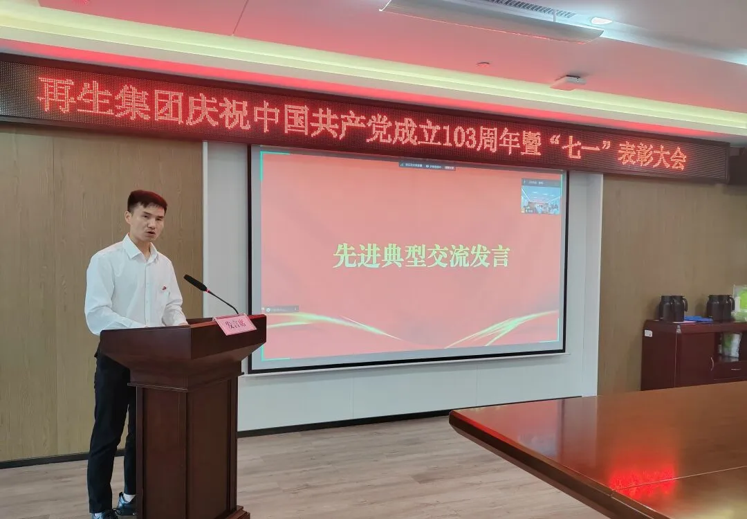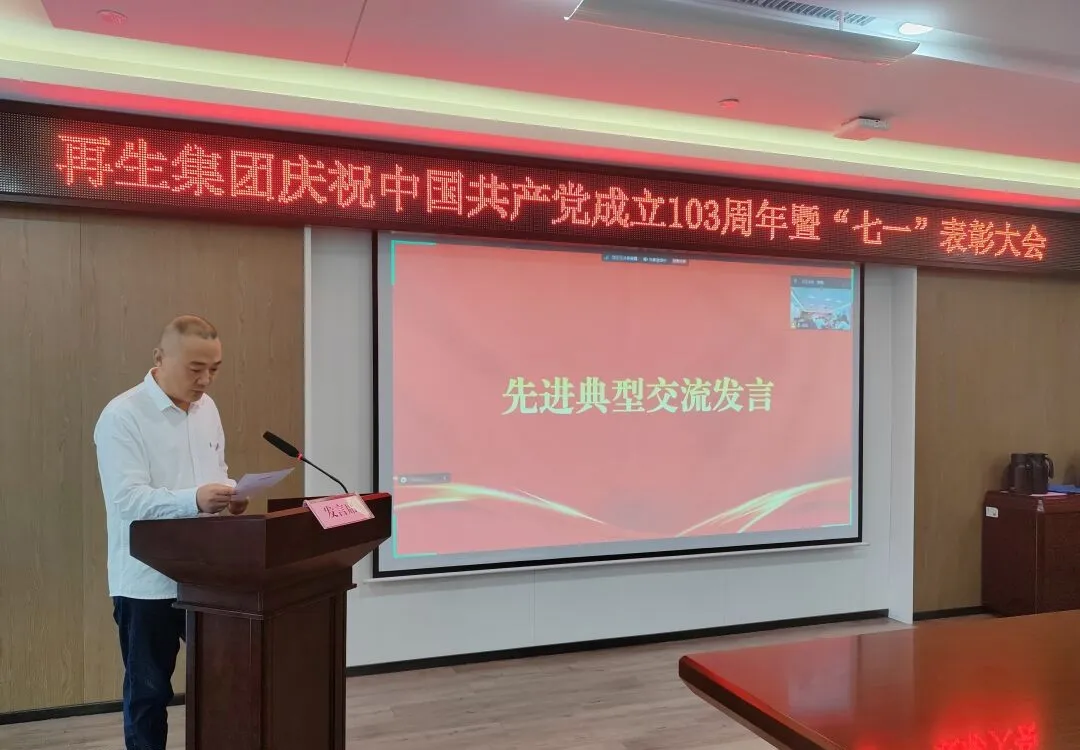 7月1日上午8:40,在嘹亮的《義勇軍進(jìn)行曲》歌聲中拉開了再生集團(tuán)慶祝中國共產(chǎn)黨成立103周年暨“七一”表彰大會的序幕,此次大會設(shè)本部主會場和園區(qū)分會場。會議由集團(tuán)公司黨總支書記、董事長王建強(qiáng)同志主持,全體黨員和入黨積極分子近40人參加。
