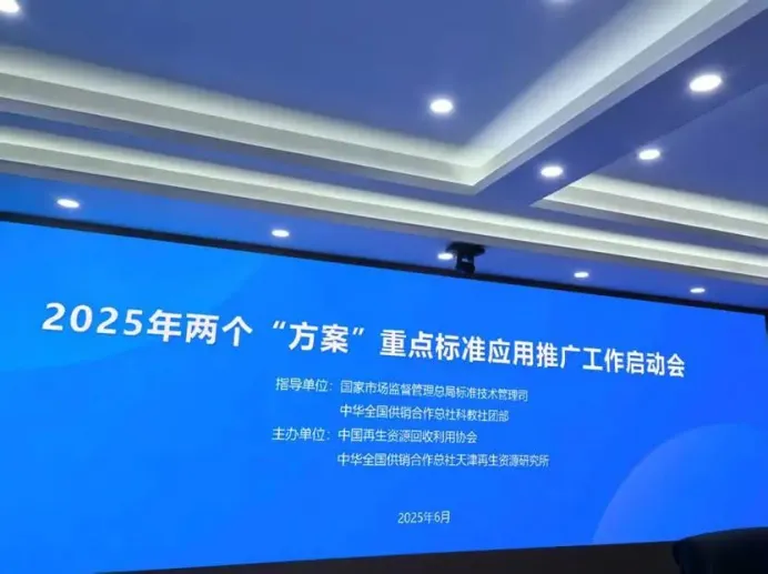 6月20日,由國家市場監(jiān)督管理總局、中華全國供銷合作總社科教社團部指導,中國再生資源回收利用協(xié)會與總社天津再生資源研究所主辦的2025年“兩個方案”重點標準應用推廣工作啟動會在京召開。作為第一批再生資源回收利用標準化試點企業(yè),湖北省再生資源集團有限公司受邀出席并發(fā)言。此次入選,既是對再生集團前期標準化工作的肯定,也體現(xiàn)了其在落實國家“兩新”政策行動中的責任擔當。