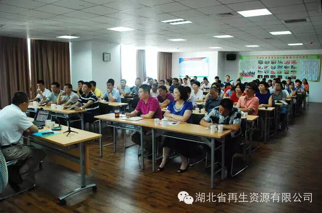為增強再生資源行業(yè)發(fā)展研判能力,提升全體員工政策水平和業(yè)務能力,7月31日湖北省再生資源有限公司舉辦了2015年首場專業(yè)知識培訓。本次培訓誠邀了武漢大學資源與環(huán)境科學院教授、副院長,博士生導師候浩波就“城市礦產”產業(yè)發(fā)展現(xiàn)狀及前景進行專業(yè)輔導。公司黨總支書記、總經理熊艷君及班子成員、公司員工70余人參加了此次專題培訓。培訓會由公司綜合辦公室主任劉冬青主持,湖北農資集團黨委副書記、紀委書記黃發(fā)禮及集團各部室代表全程參與培訓。
